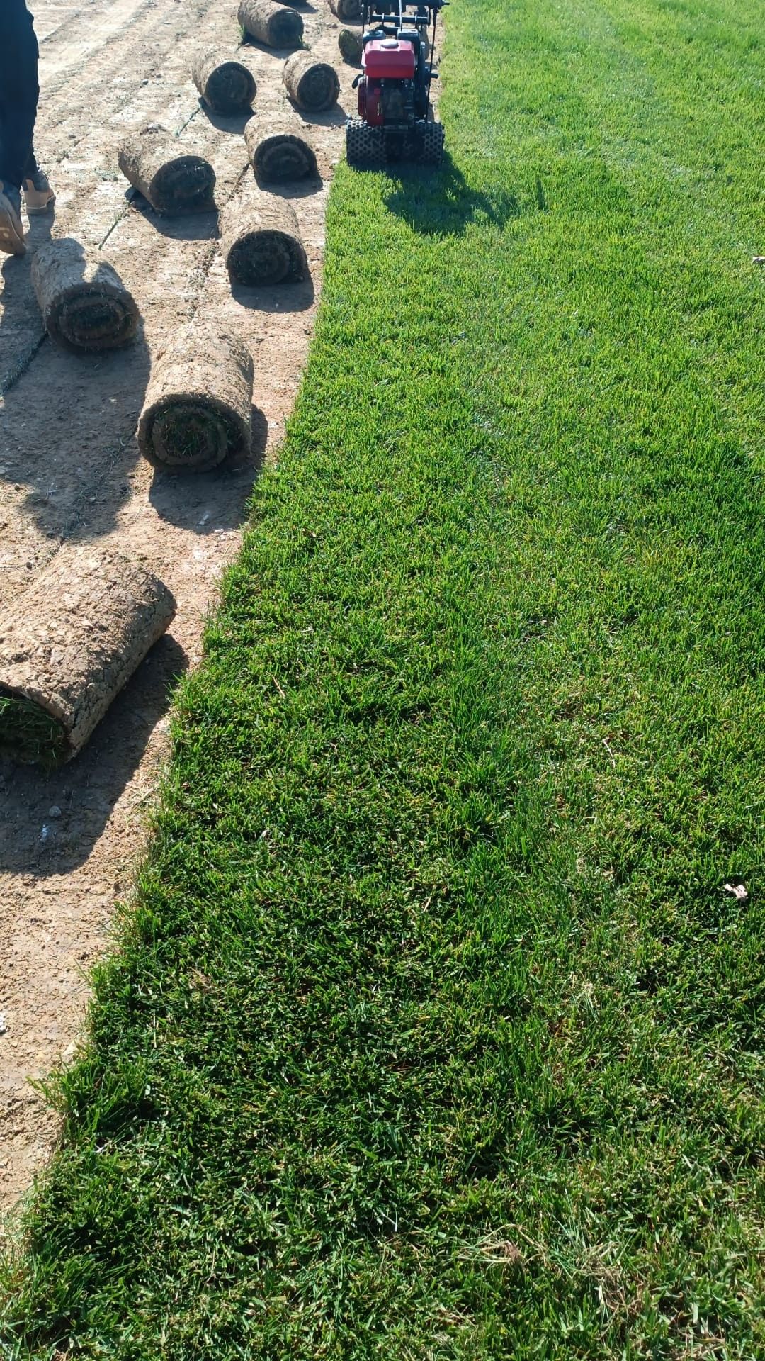 - زرع النجيل: قم بنشر قطع النجيل بالتساوي على السطح المعد، مع مراعاة أن تكون القطع متقاربة ولكن دون تداخل. يُفضل أن يبدأ التوزيع من الحواف ويتجه نحو المنتصف.
